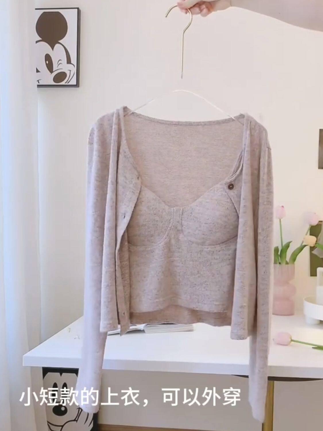 莫代尔棉春夏睡衣女性感慵懒风休闲带胸垫可外穿三件套春秋家居服