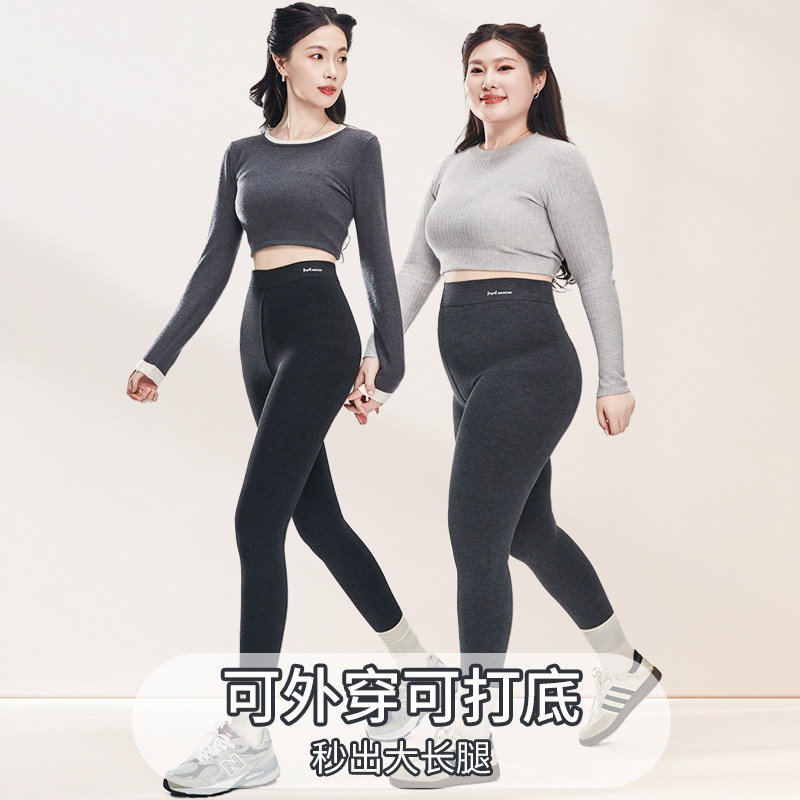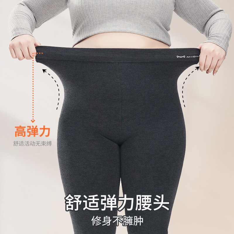 猫人胖MM小黑裤加肥大码200斤打底裤女发热灰色格蕾系外穿九分裤