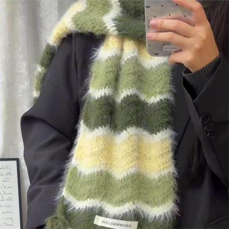 渐变波浪围巾羊毛混纺雪花