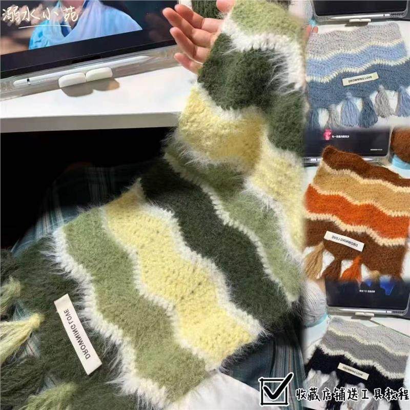 渐变波浪围巾羊毛混纺雪花纱钩针编织四色渐变波浪纹围巾diy材料