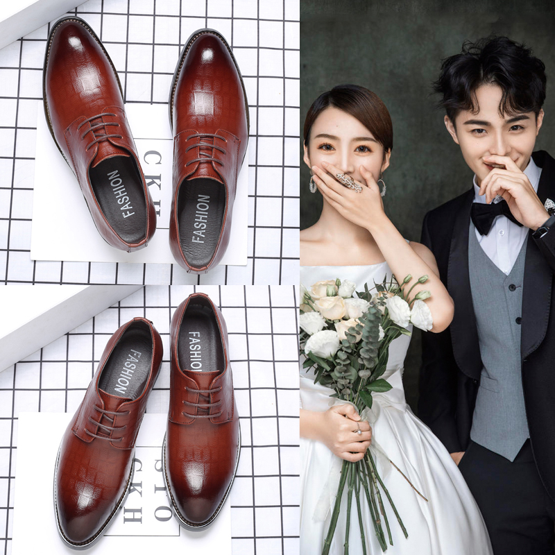 2025新郎结婚礼鞋内增高韩版秋天英伦商务休闲皮鞋男士配西装伴郎