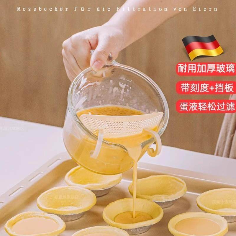 德国玻璃鸡蛋液过滤量杯带刻度烘焙食品级高硼硅带挡板打蛋耐高温