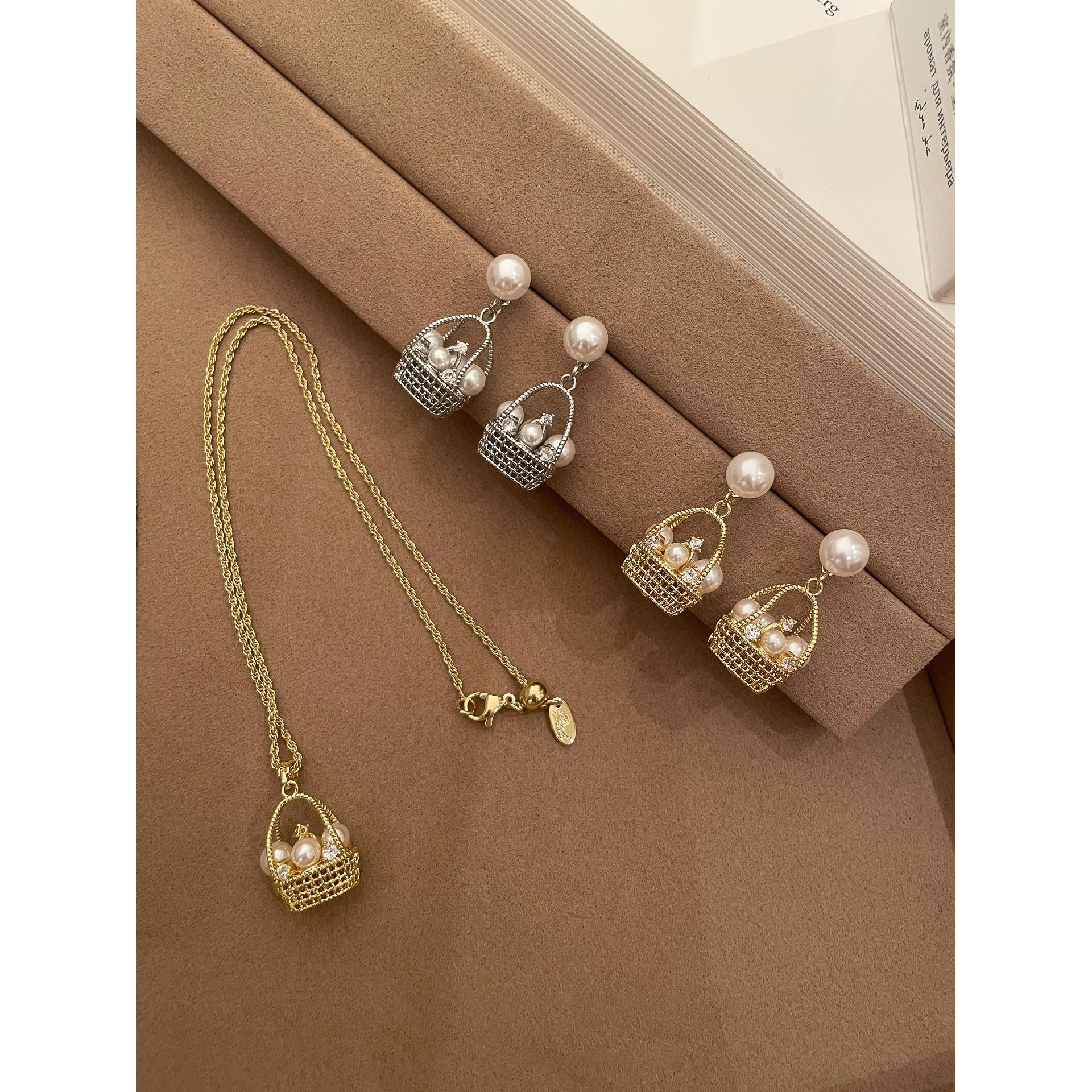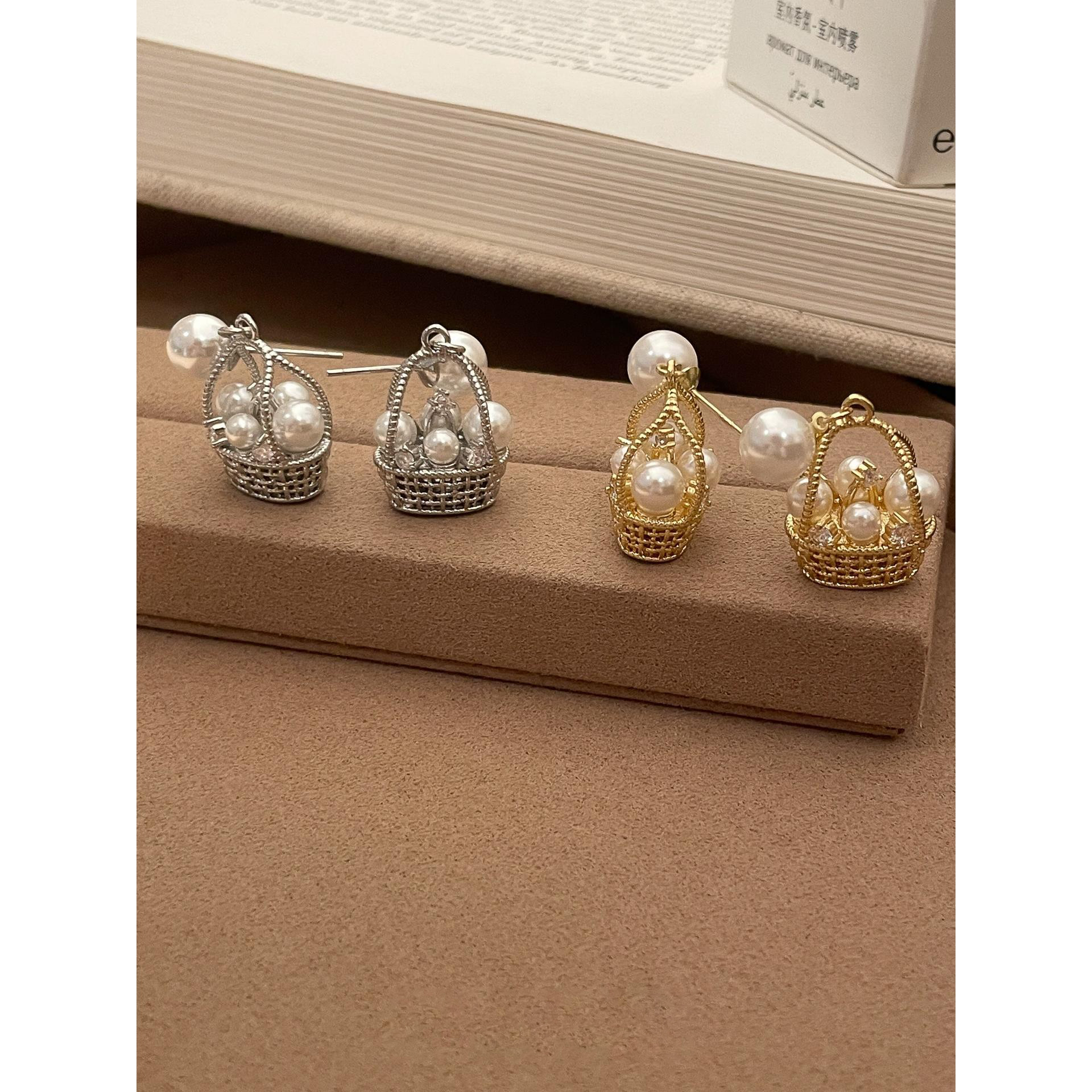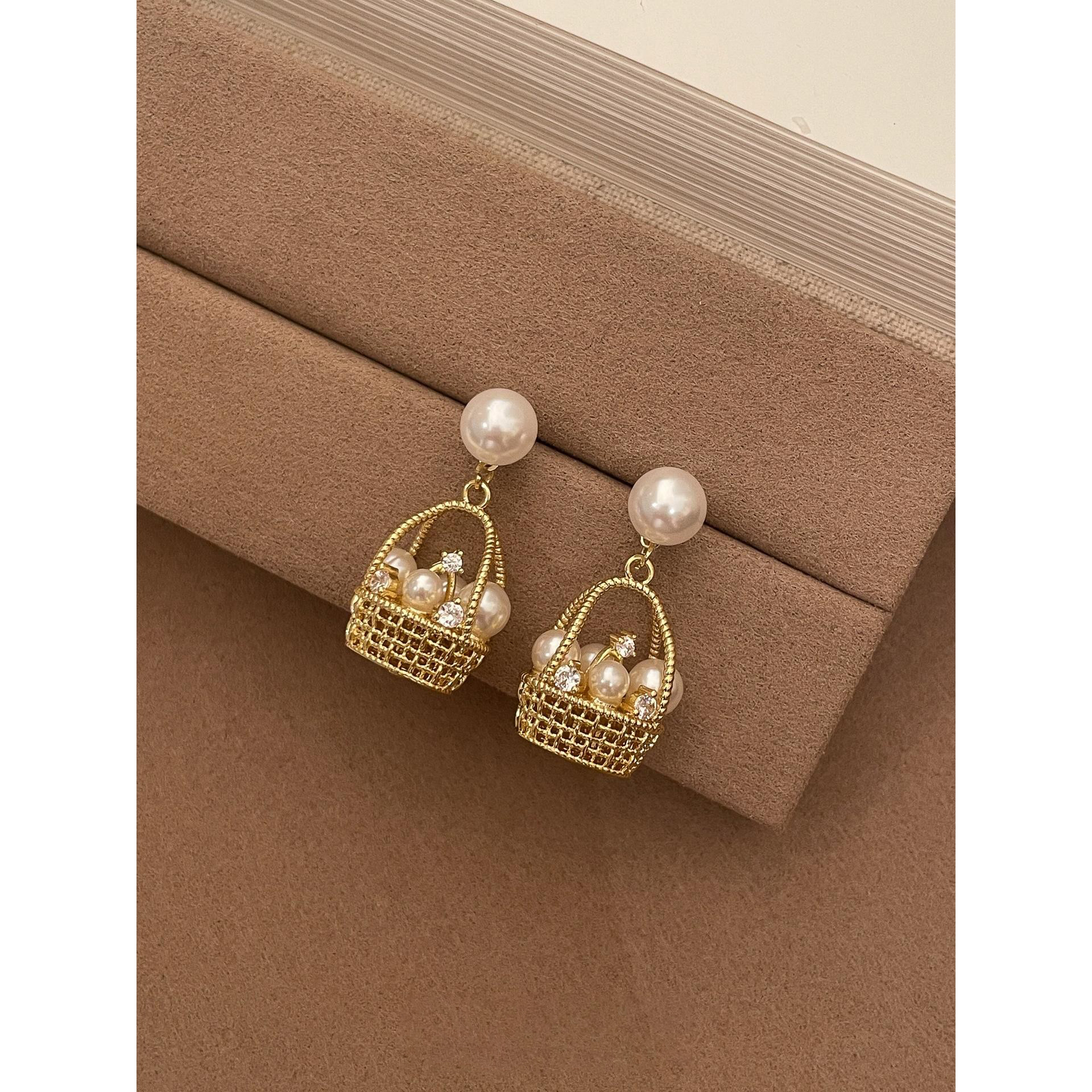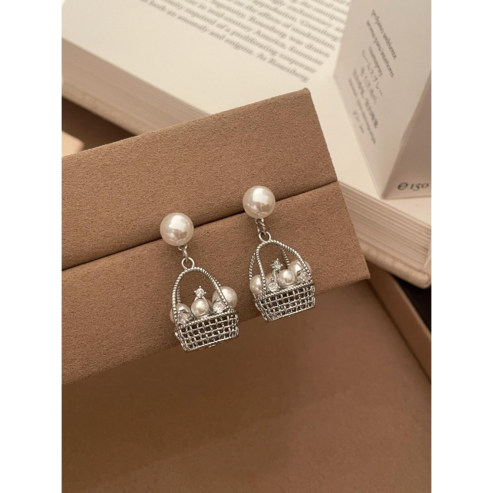 财篮子花篮仿珍珠耳钉小众设计