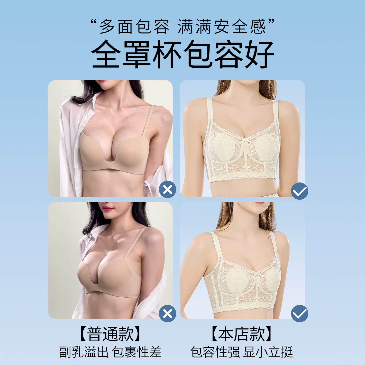 都市丽人兔耳朵内衣女夏超薄性感蕾丝大胸显小收副乳调整型文胸罩