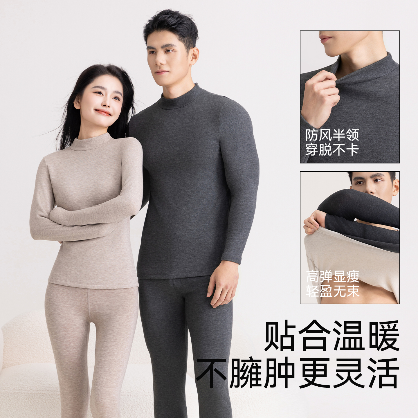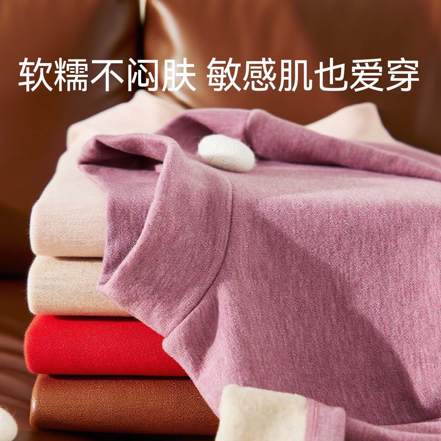 羊绒蚕丝保暖内衣男女秋冬德绒发热半高领棉毛衫情侣秋衣秋裤套装