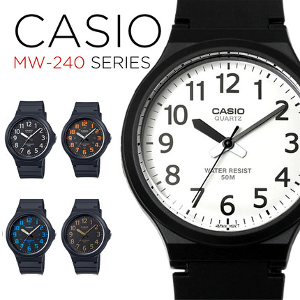 大表盘卡西欧Casio运动手表男 简单耐用防水老人学生手表女MW-240