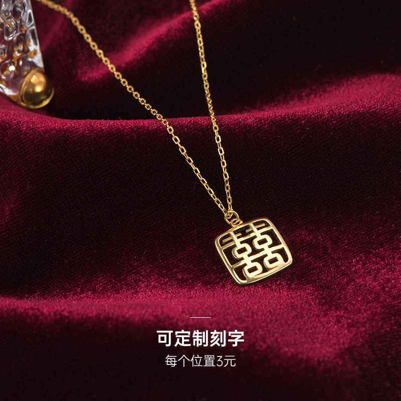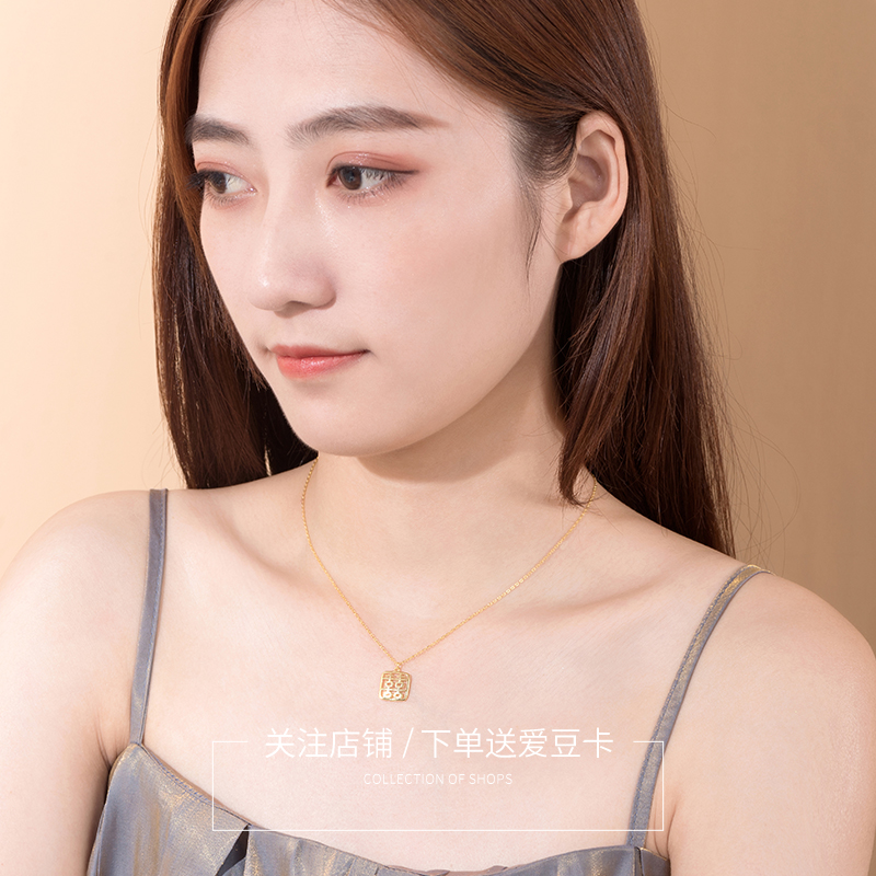 925纯银双方喜项链女潮网红ins简约囍锁骨链吊坠兵心之恋饰品军恋