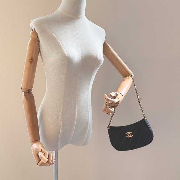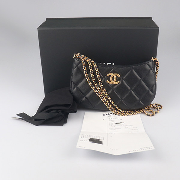 【自营】中古9新香奈儿HOBO 嬉皮腋下包荔枝皮单肩斜挎包黑色