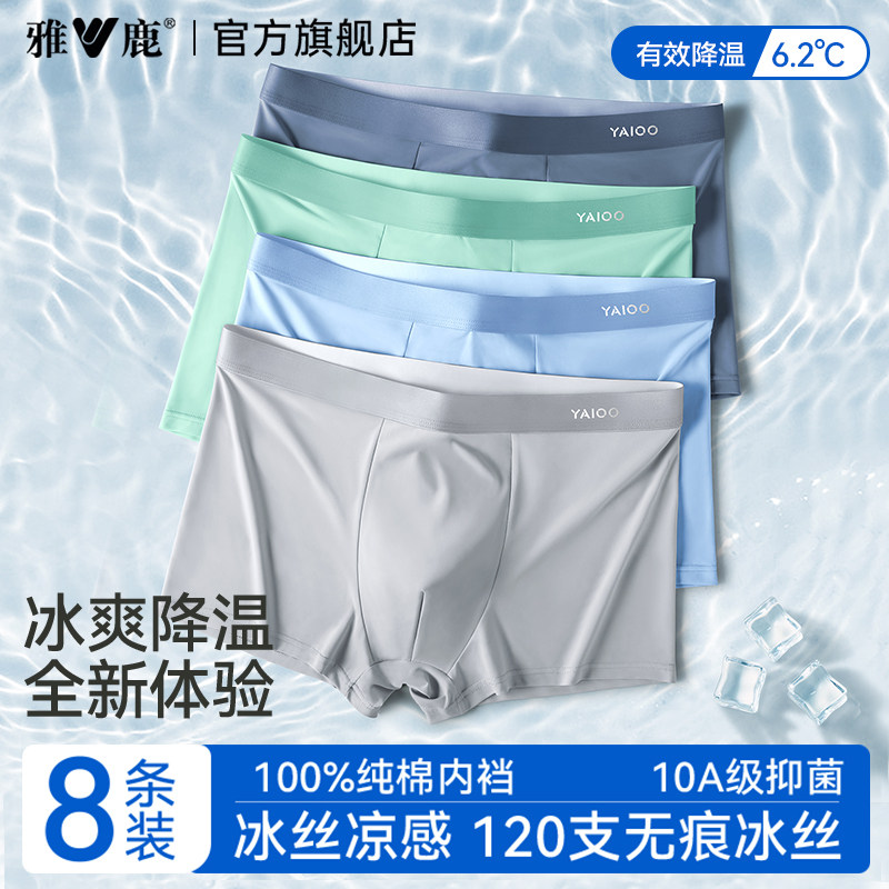雅鹿男士内裤男款无痕冰丝夏季透气平角纯棉抑菌裆男生四角短裤衩
