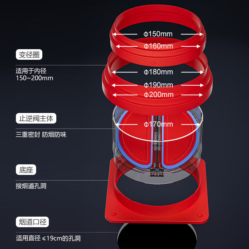 杜邦厨房烟道全密封防味公共烟道止逆阀油烟机止回阀烟道阀D