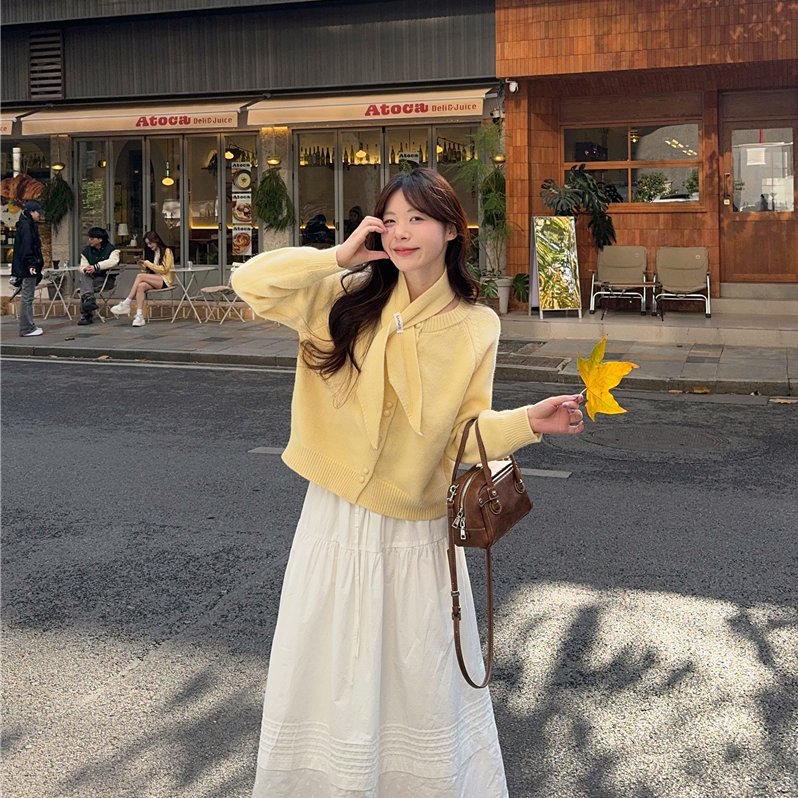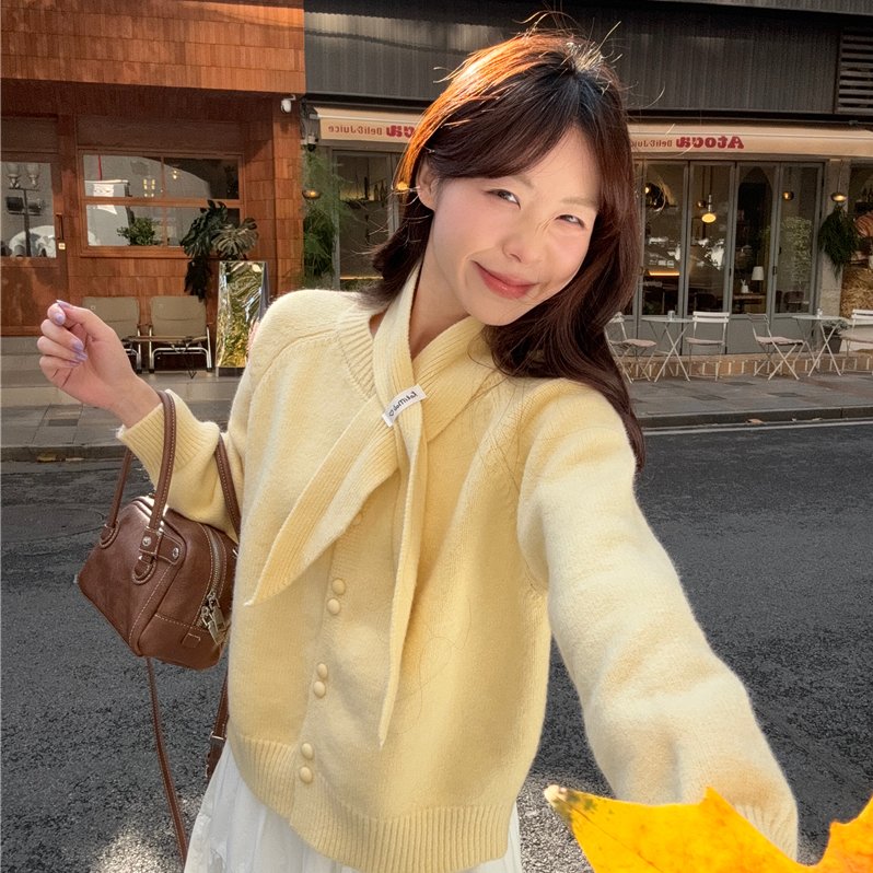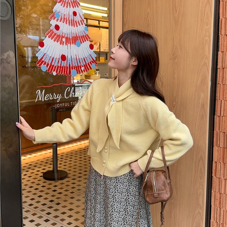 实拍 韩系复古配小围巾甜美百搭毛衣开衫
