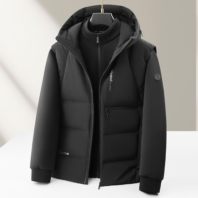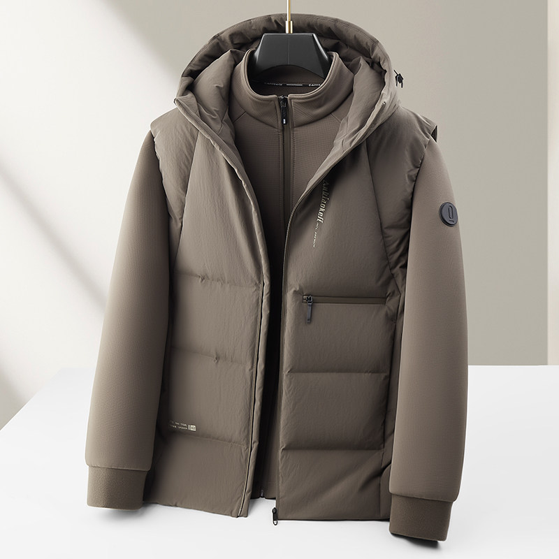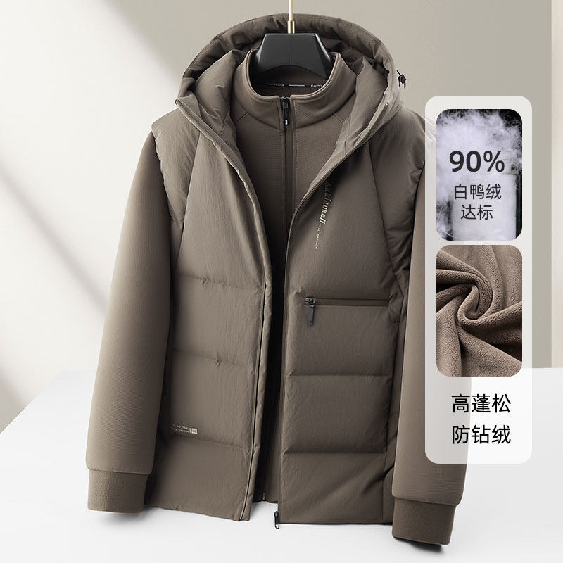 利郎男式白鸭羽绒服秋冬二件套脱卸保暖高奢休闲马甲外套中年上衣