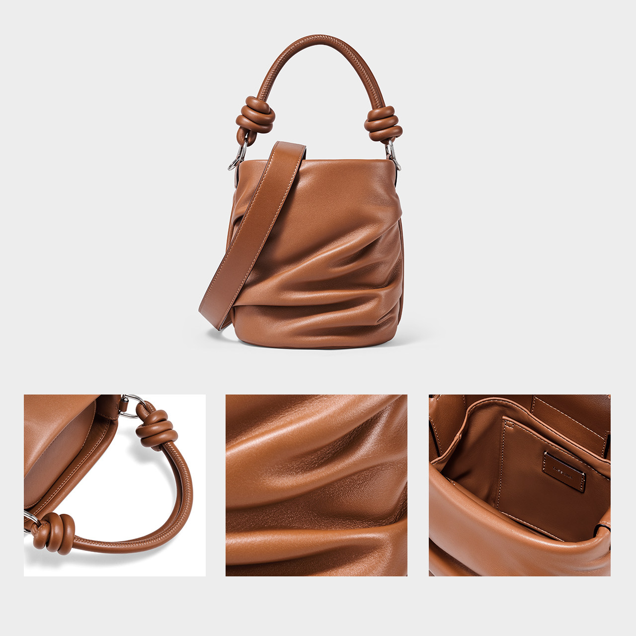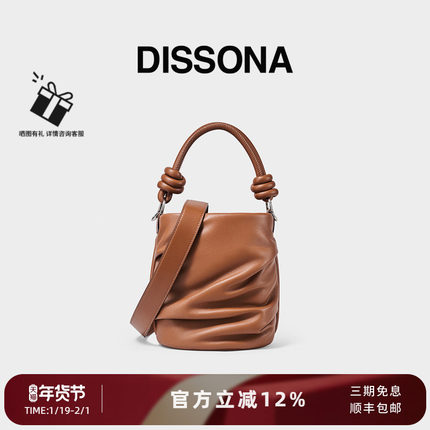 迪桑娜女包泡芙单肩斜挎包羊皮斜跨手提包水桶包