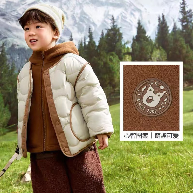 品牌折扣童装男童羽绒服2025冬季新款儿童轻羽绒摇粒绒里件两件套