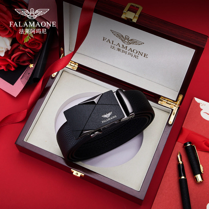 法莱阿玛尼皮带男真皮年轻人自动扣奢侈品2024新款裤腰带男潮牛皮