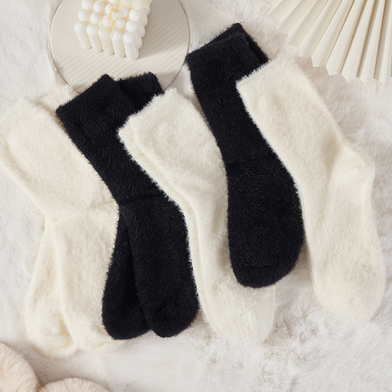水貂绒冬季袜子女白色日系地板袜加绒保暖睡眠袜加厚毛茸茸月子袜