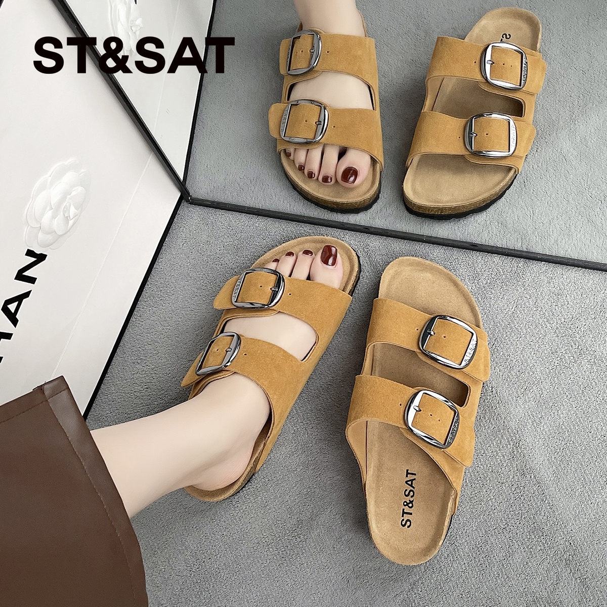 星期六真皮厚底女士勃肯拖鞋2025夏新款百搭休闲懒人一脚蹬凉拖鞋