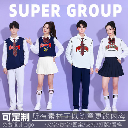 初中生班级团体舞台表演服秋冬长袖啦啦操男女同款演出服新款