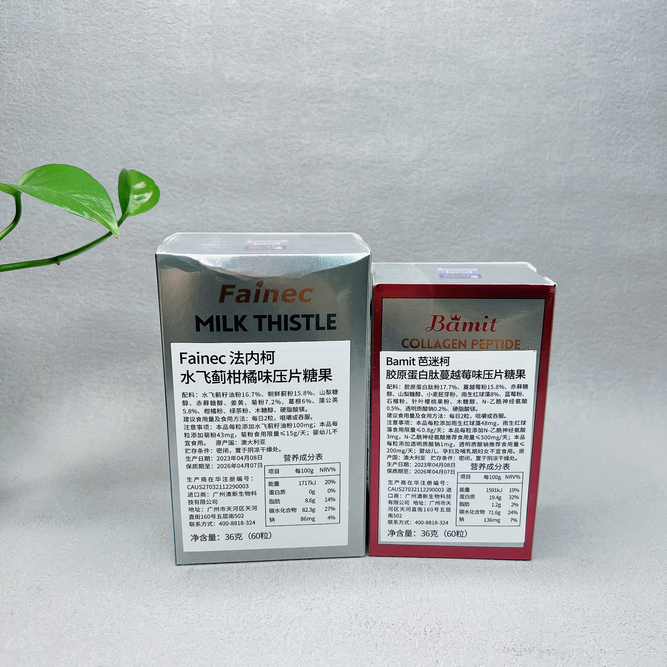 澳大利亚进口水飞蓟柑橘味/胶原蛋白肽蔓越莓味压片糖果36g(60粒)