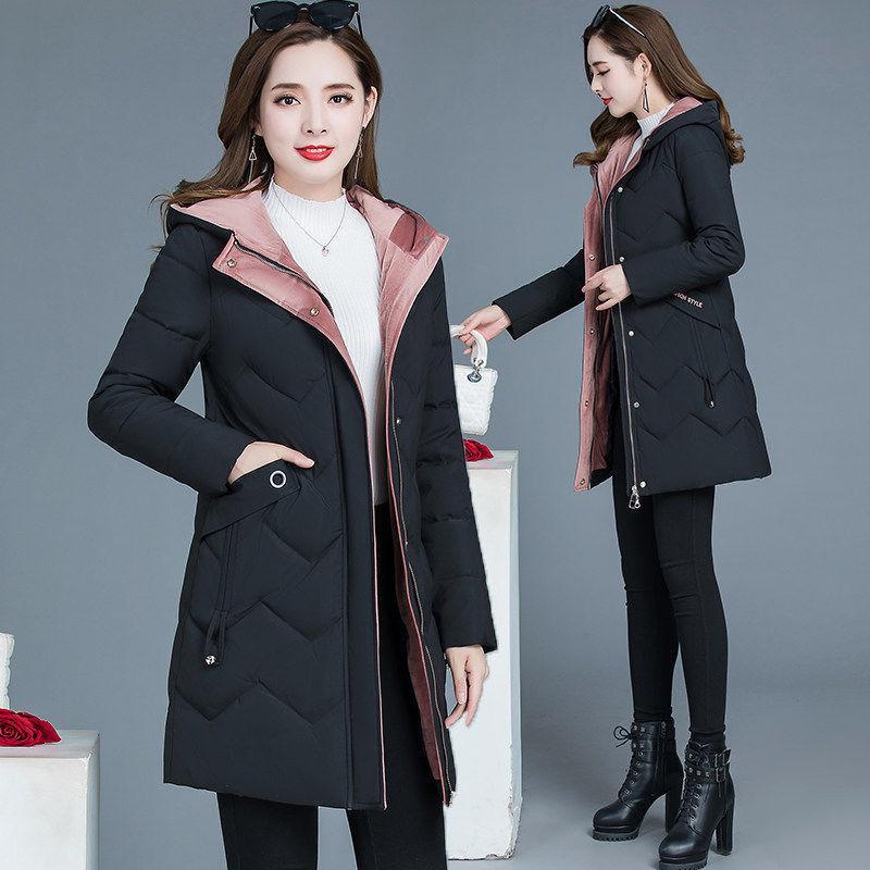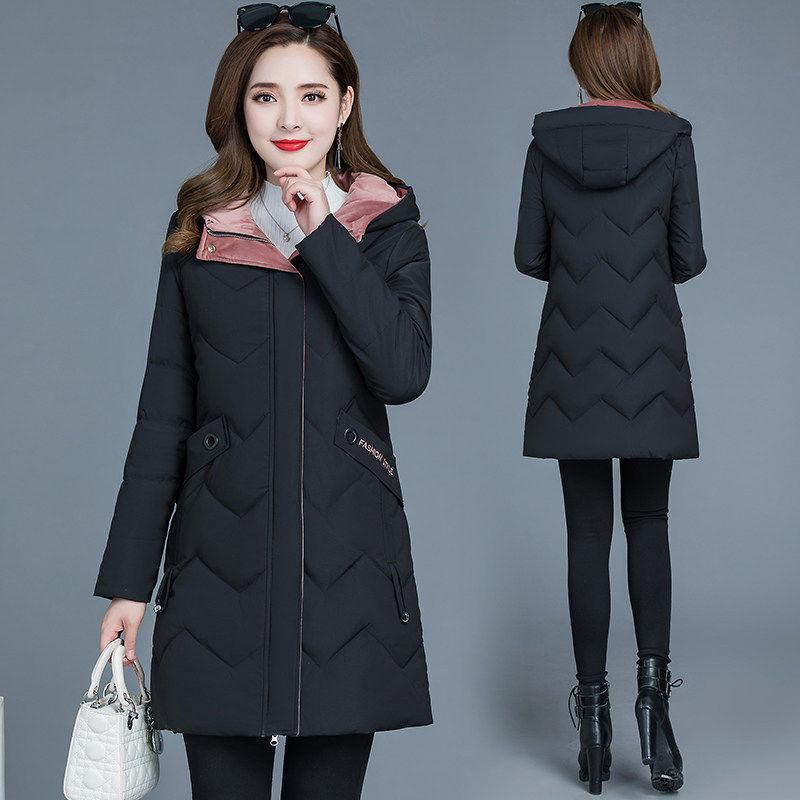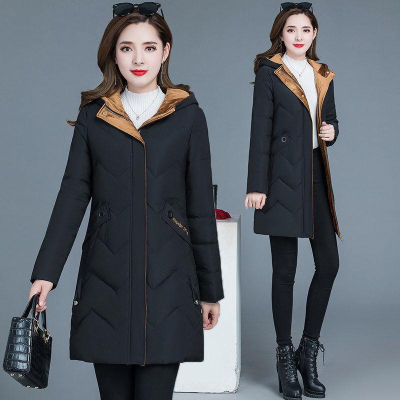 棉衣女中长款中年女士加绒棉服2023新款大码洋气连帽棉袄冬季外套