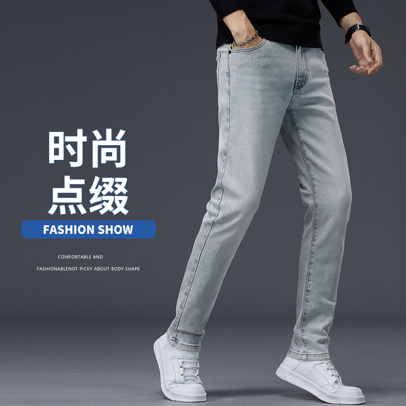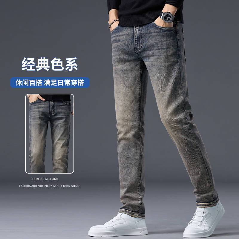 罗蒙男士牛仔裤秋季直筒修身小脚2025新款潮牌休闲春秋长裤子男款