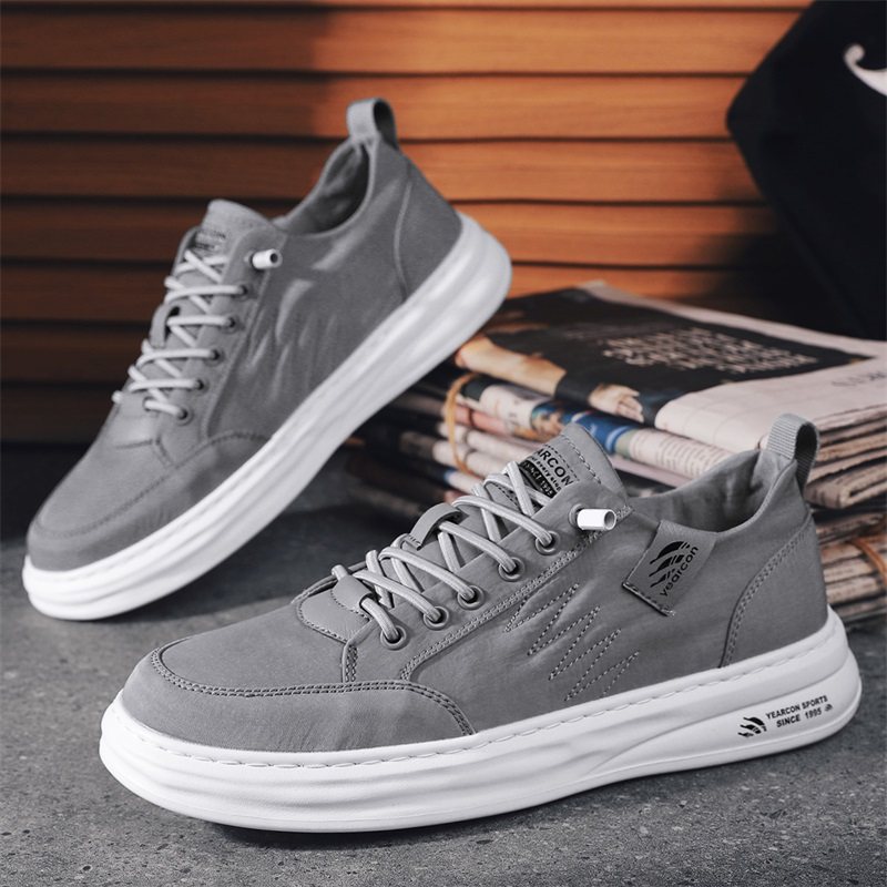 意尔康男鞋2025新款夏季透气薄款男士厚底板鞋懒人一脚蹬帆布鞋子