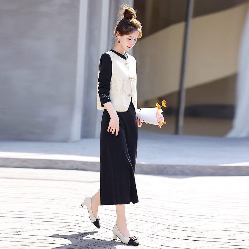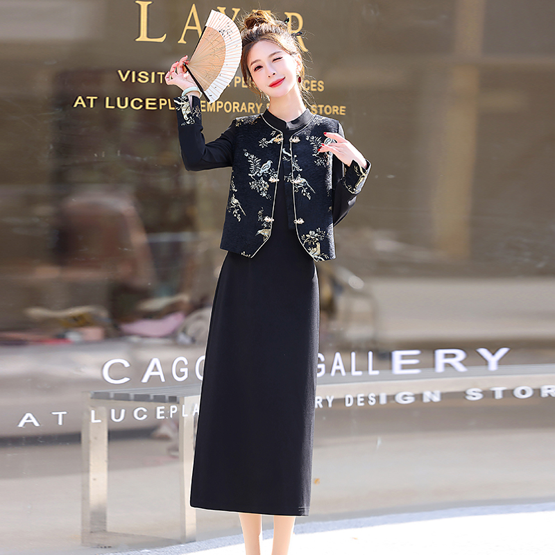 马甲金丝绒连衣裙套装女新中式国风春秋气质穿搭一整套2025两件套