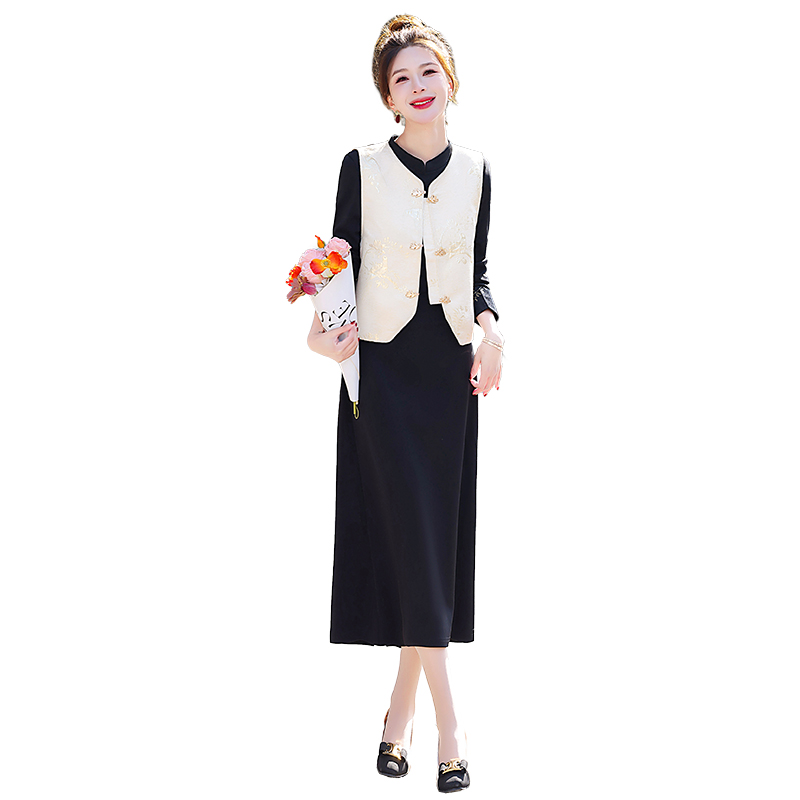 新中式国风马甲金丝绒连衣裙套装