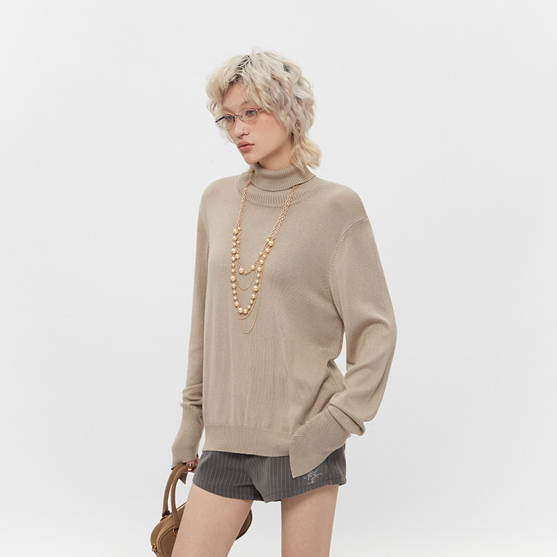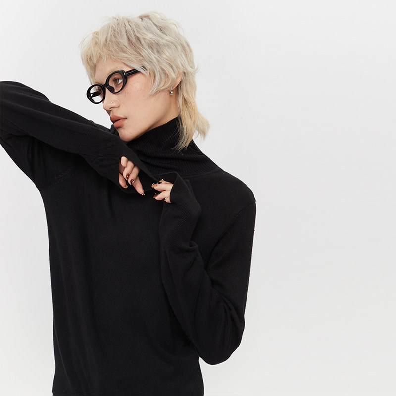 AIRHOOD 2025半高领短款毛衣女秋冬季修身保暖内搭打底纯色针织衫