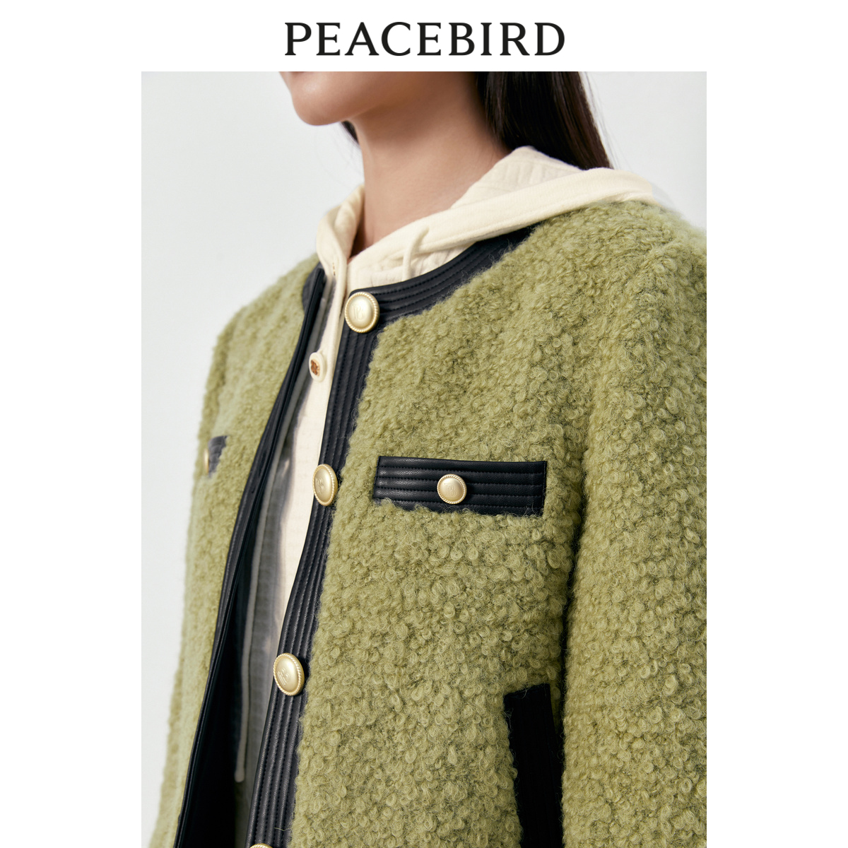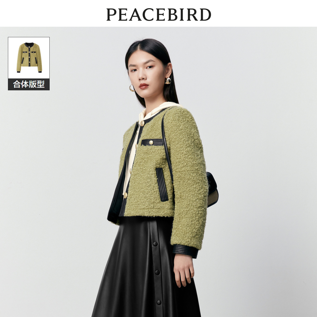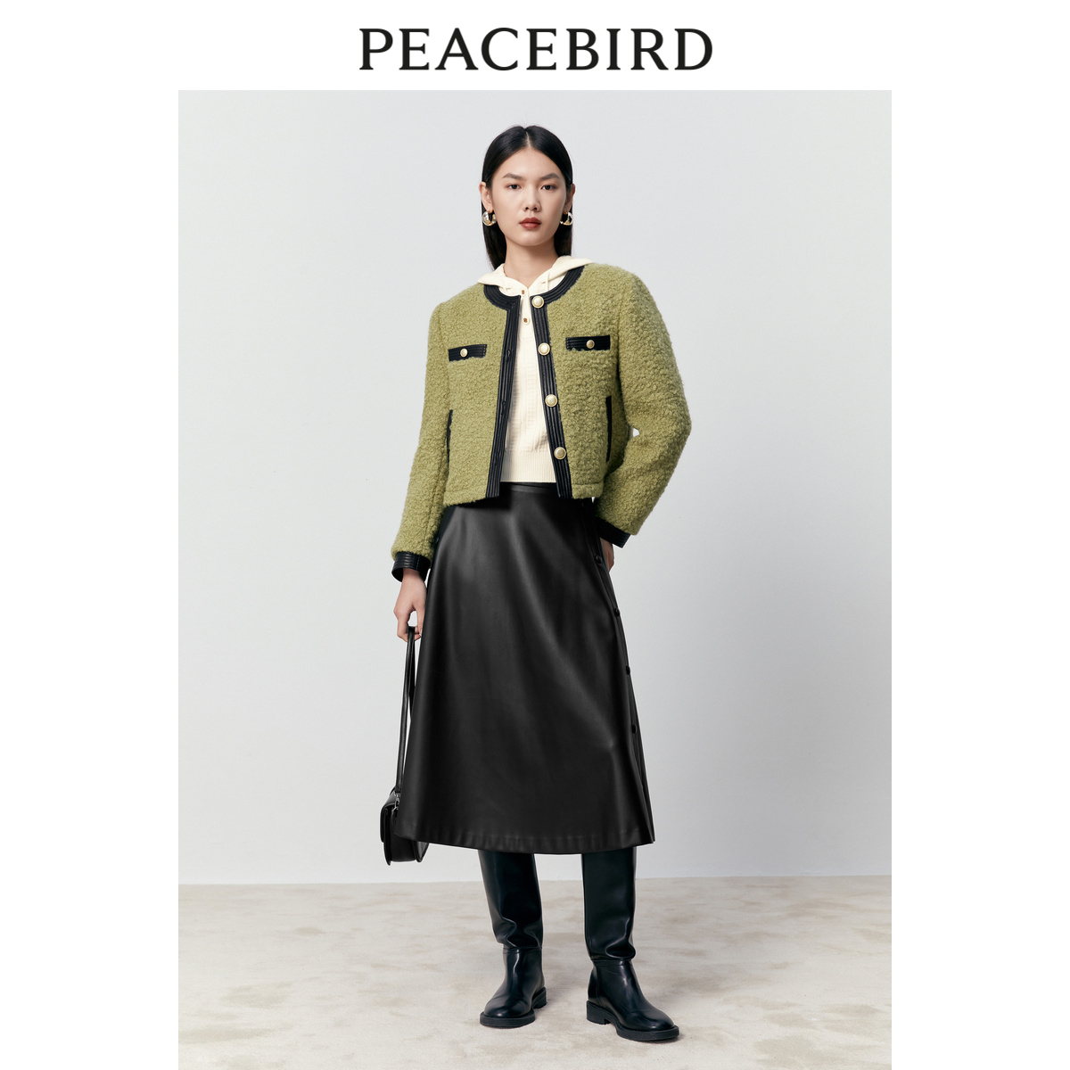 【商场同款】太平鸟女装2025冬季新款小香风PU边短外套A1BBD4353