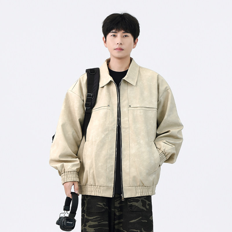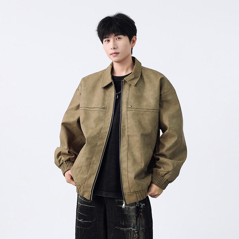 班尼路加绒加厚PU皮夹克外套男士秋冬季2026新款水洗复古棒球服E