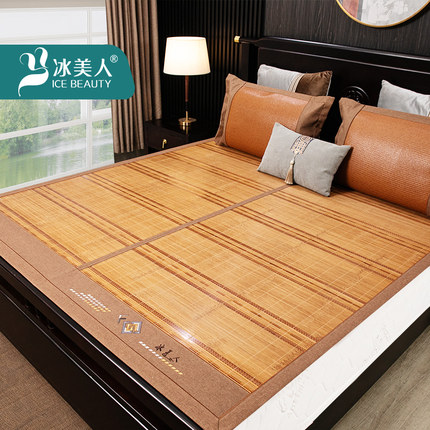 冰美人高端碳化凉席竹席1.8m双人1.5米床夏季双面直筒折叠藤草席