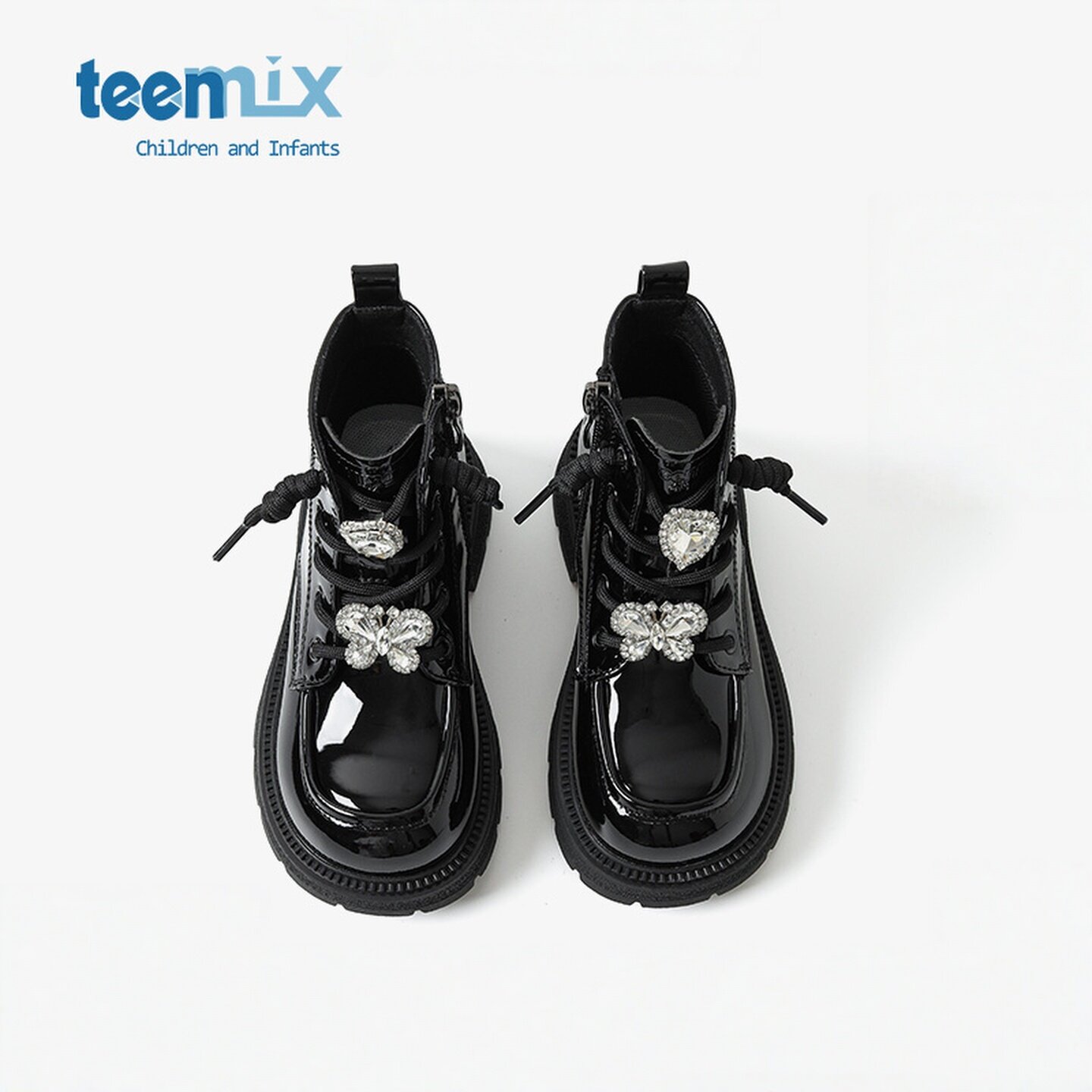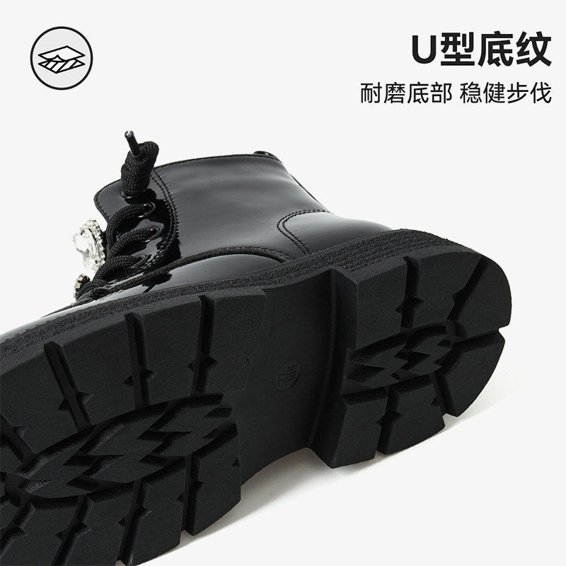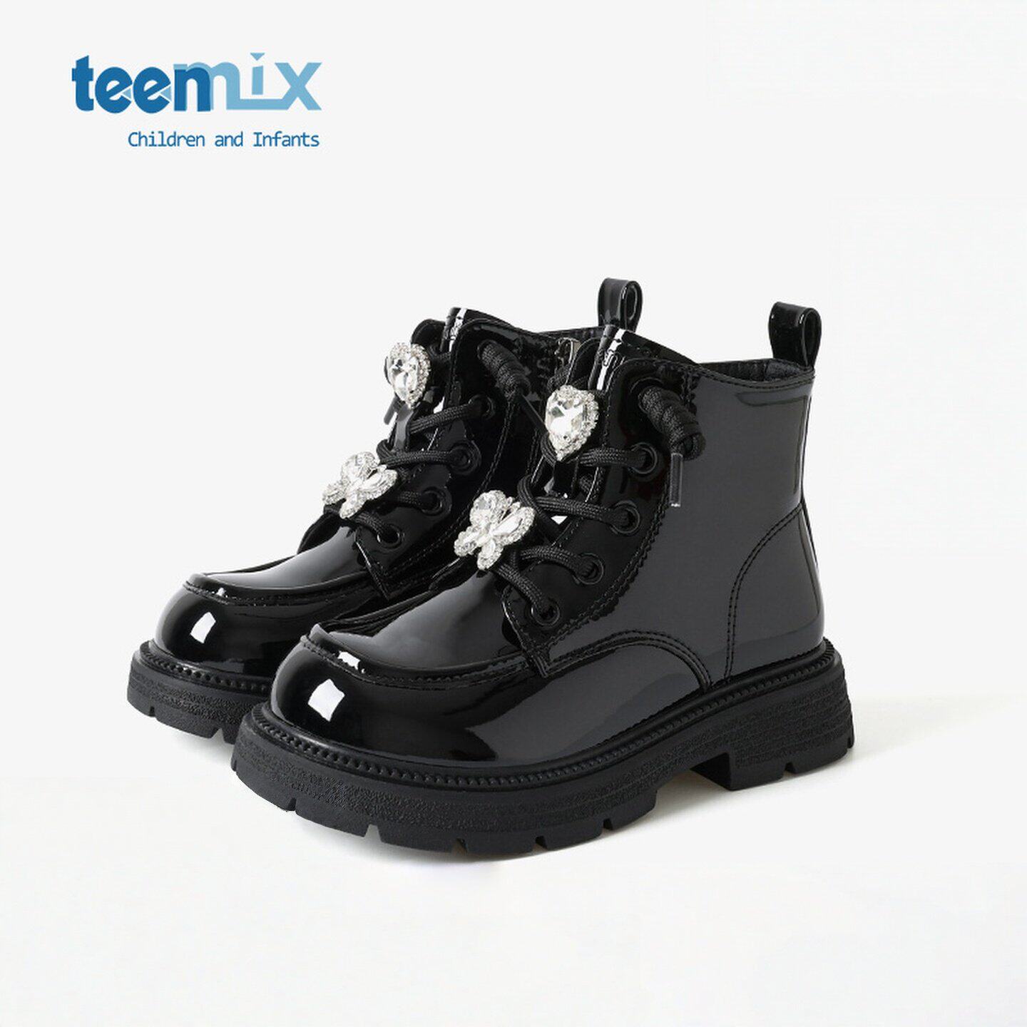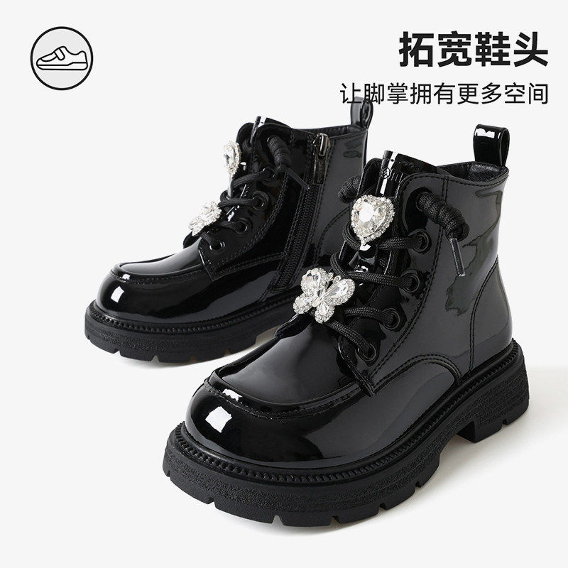 天美意童鞋2026年春秋季儿童中大童女宝宝英伦风水钻黑色马丁靴子