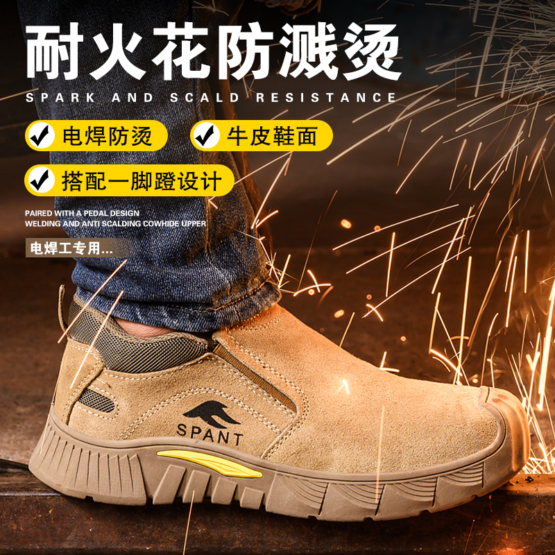 劳保鞋男四季一脚蹬电焊工专用防砸防刺穿钢包头轻便软底安全工作