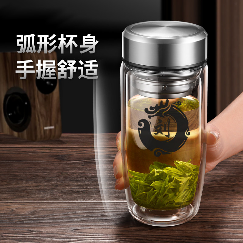 双层玻璃杯耐高温鹅蛋杯男款办公水杯创意文字杯子便携泡茶杯定制
