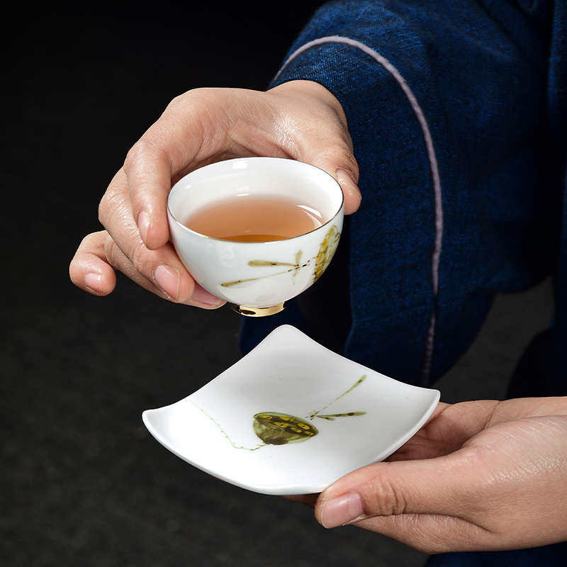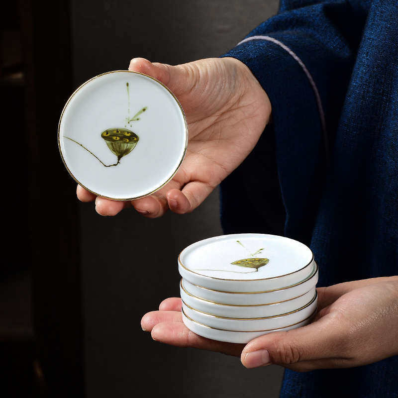 昶玖手绘莲蓬陶瓷杯垫功夫茶具茶道配件茶杯托家用防烫隔热垫碟子