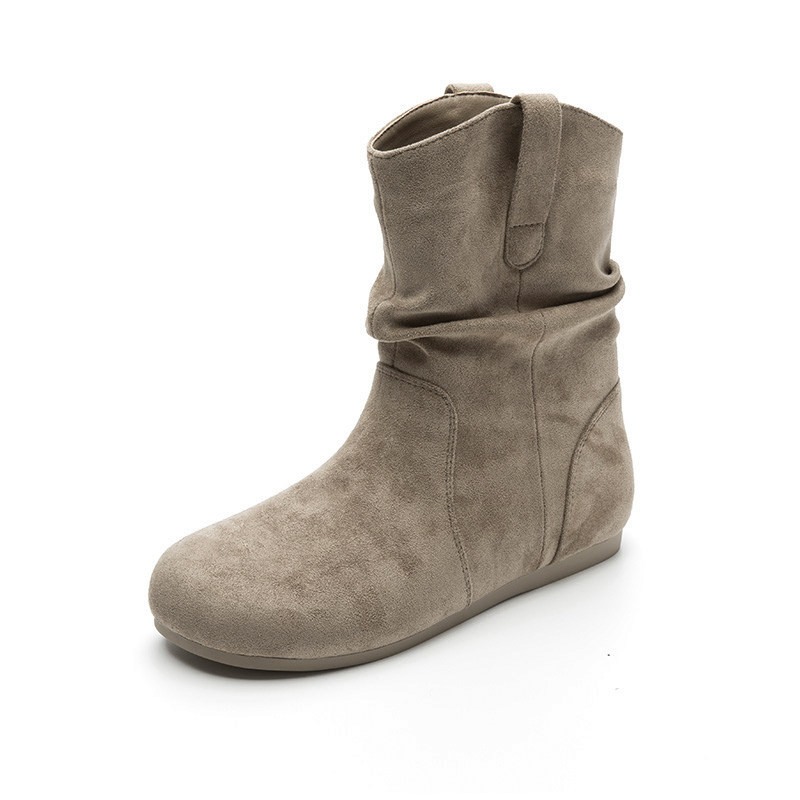 大东复古勃肯短靴女2025新款秋冬棕色加绒靴子平底褶皱绒面堆堆靴