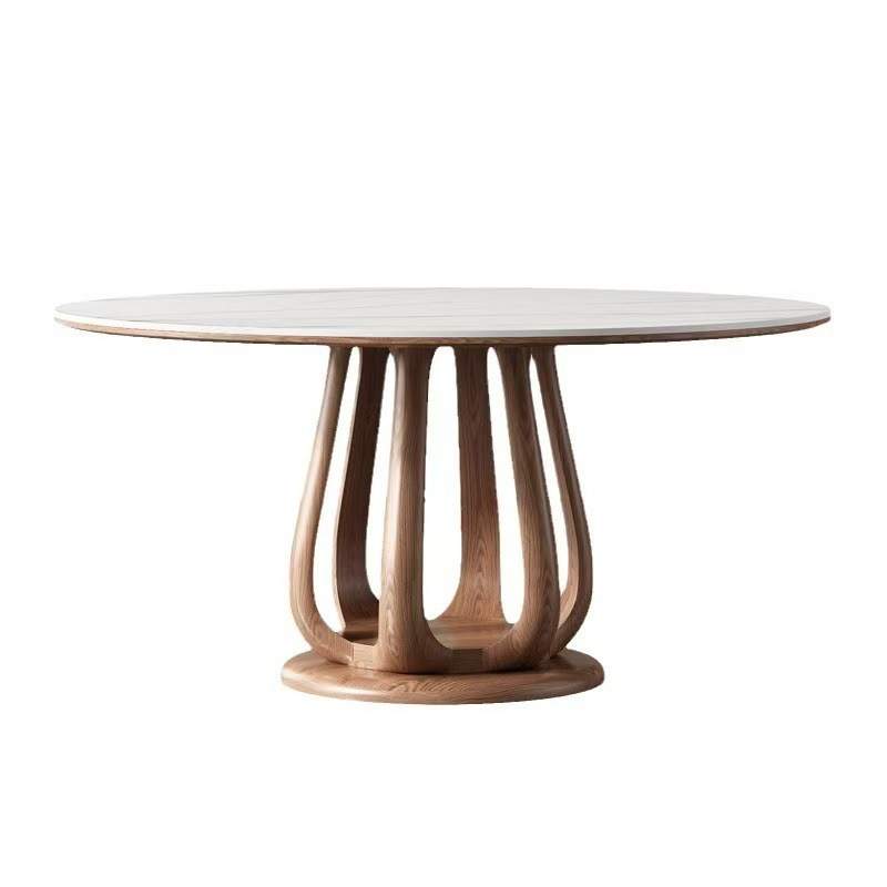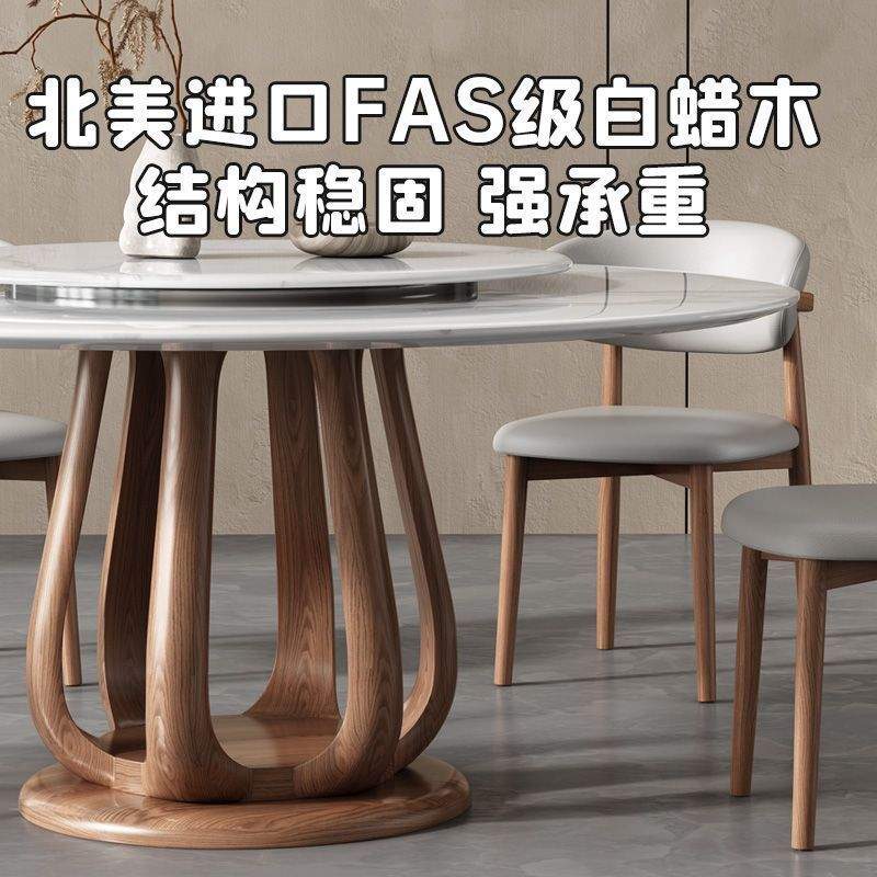 现代简约家用小户型北欧风实木圆桌白蜡木圆形餐桌岩板餐桌椅组合