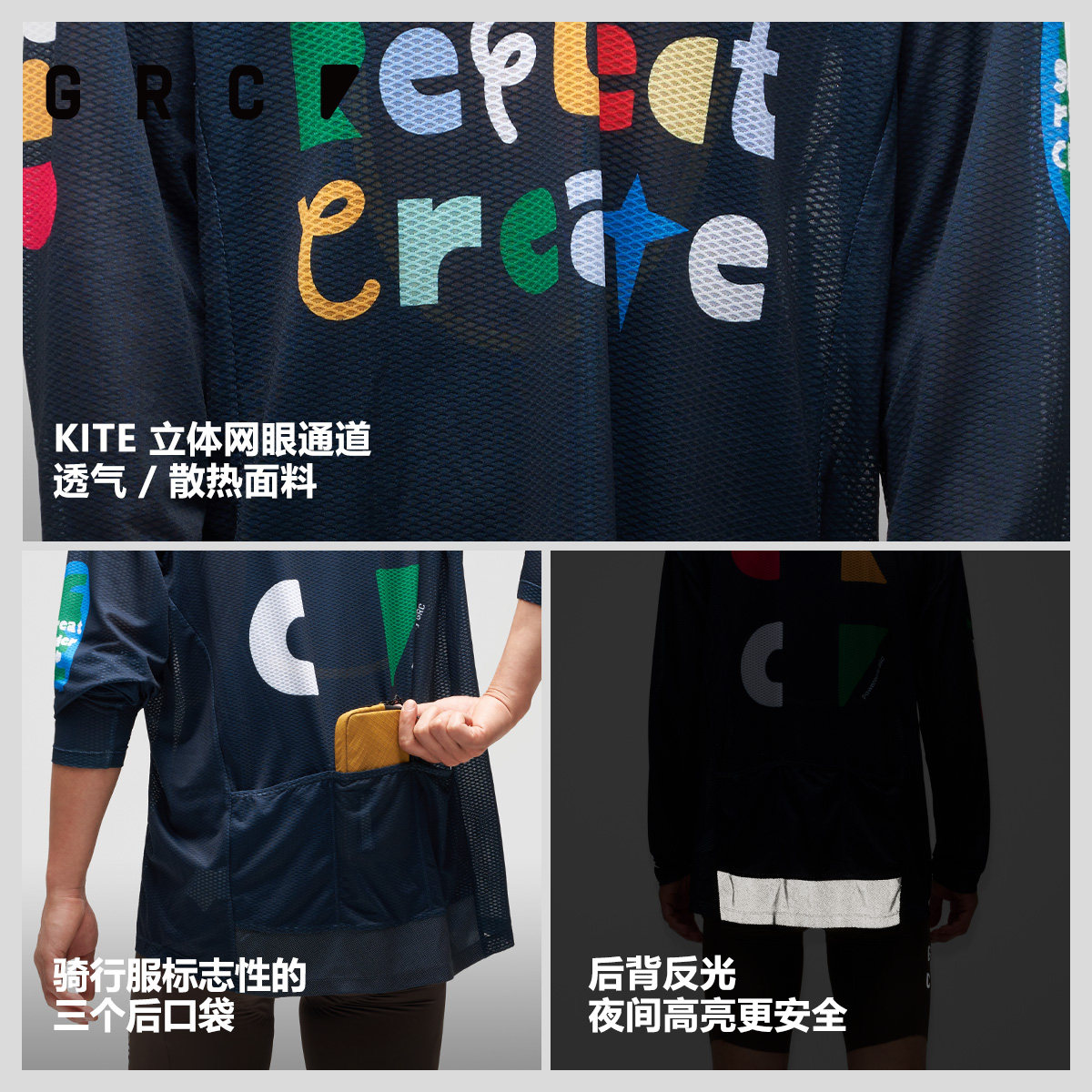 GRC骑行服通勤长袖反光宽松
