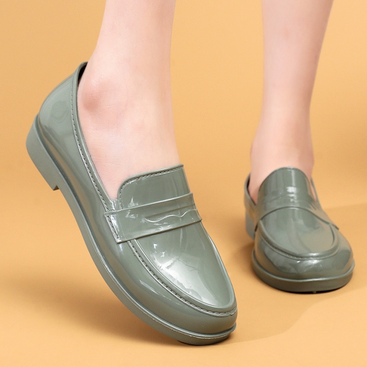 塑料雨鞋女时尚百搭乐福鞋平底外穿防滑软底防水舒适单鞋女工作鞋