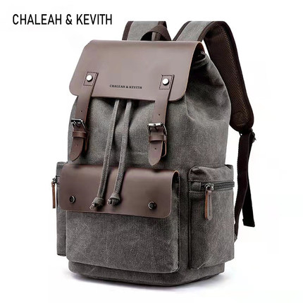 真皮双肩包男复古手提油蜡帆布简约休闲旅行商务时尚背包电脑书包