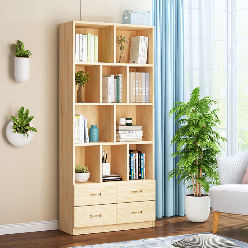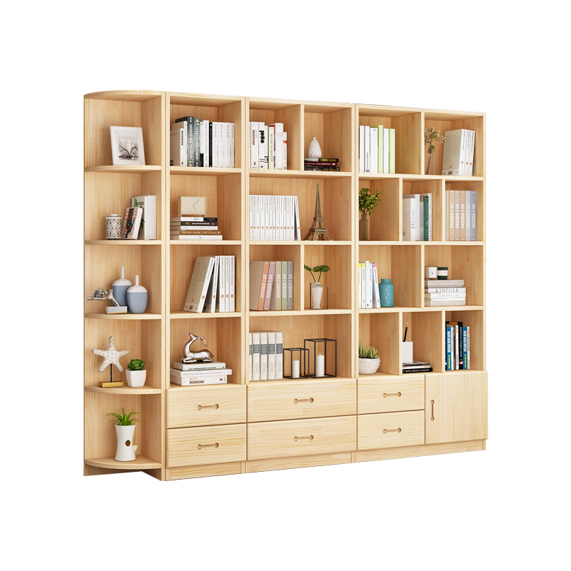 实木书架书柜带门自由组合落地松木格子储物柜客厅现代书橱置物架
