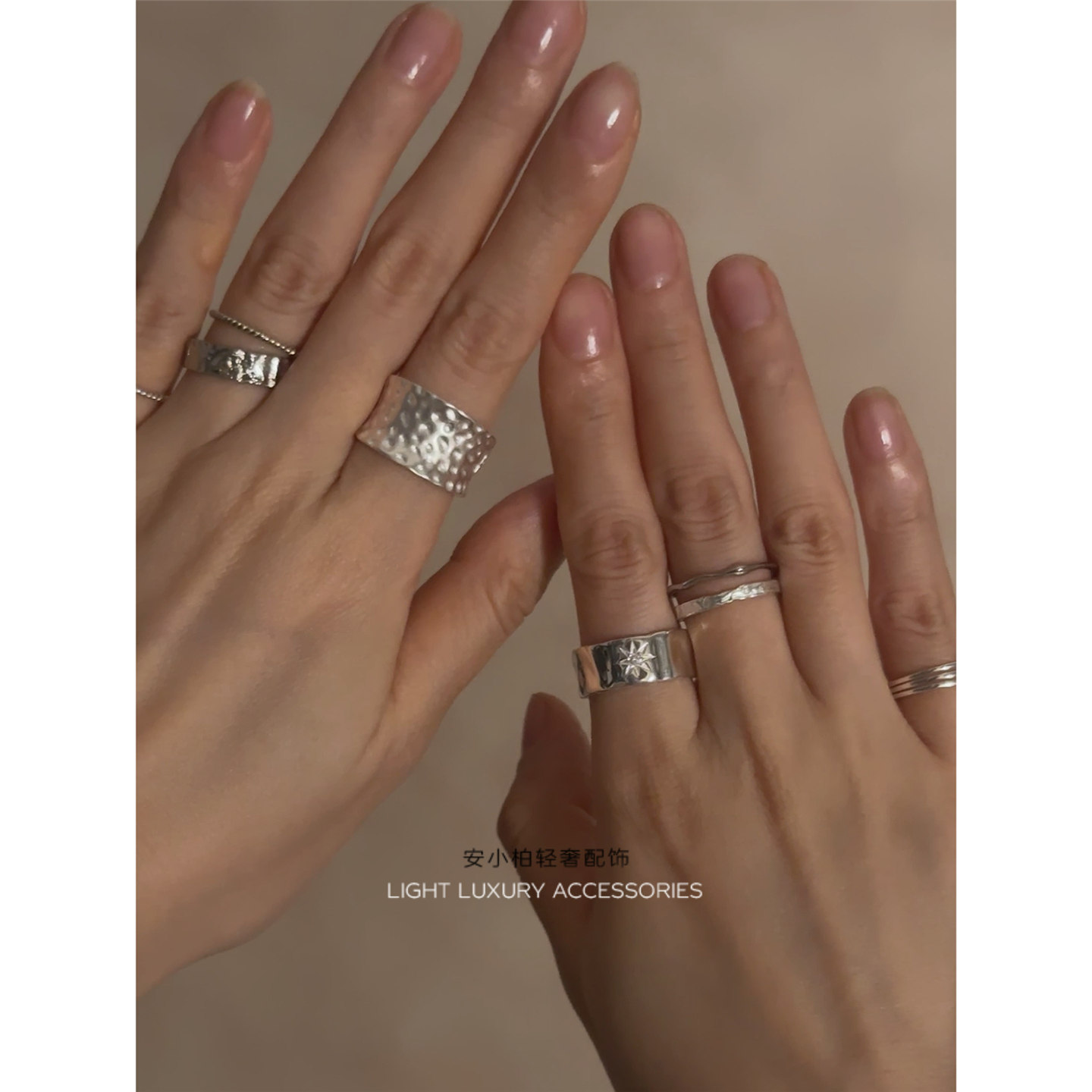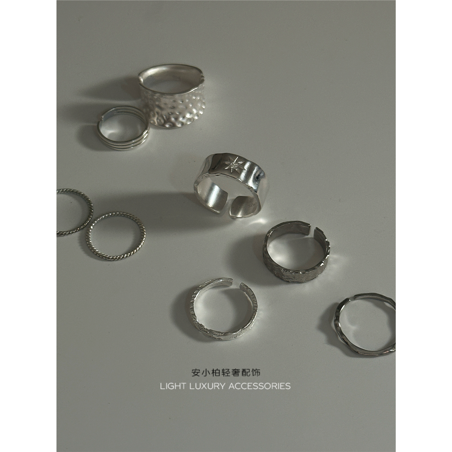安小柏 自由搭配 通体s925纯银戒指 ins简约开口指环 尾戒叠带女