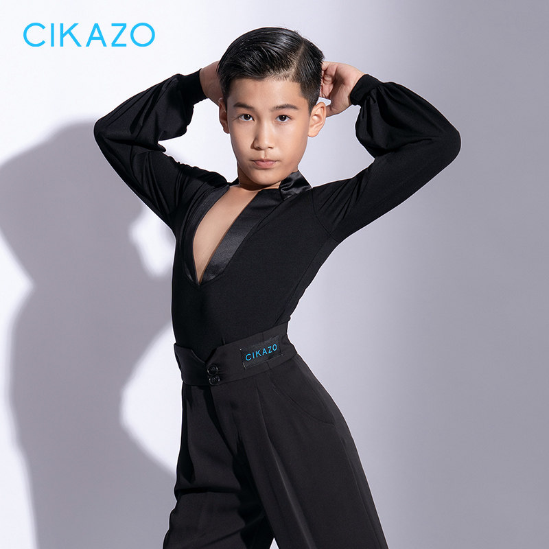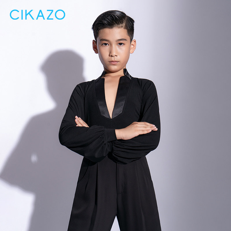 茜卡索 男童拉丁舞服秋冬长袖新款训练上衣男生灯笼袖练功服G5105
