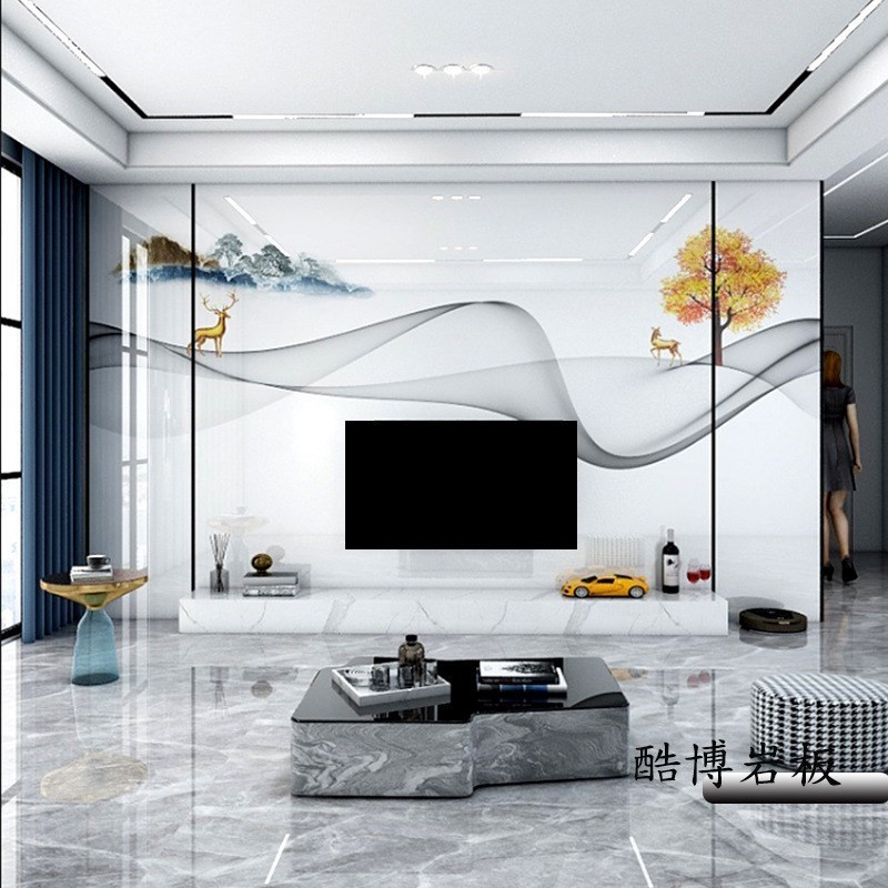 瓷砖电视背景墙效果图高温微晶石岩板现代简约客厅U石材大板沙发