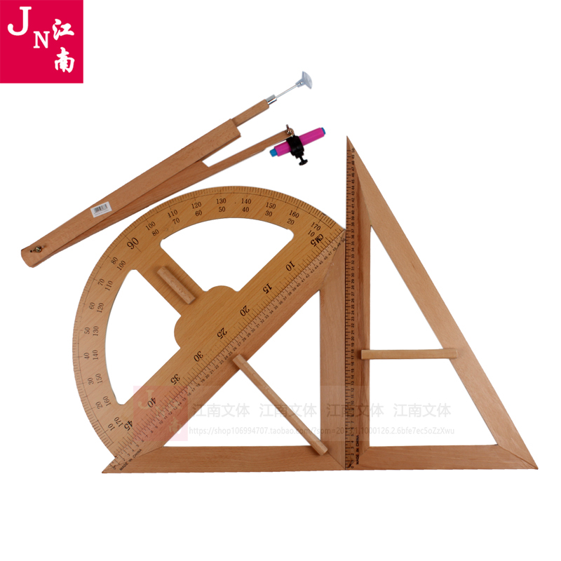 实木教学大三角板尺磁性白板黑板用尺榉木手柄量角器圆规绘图套装