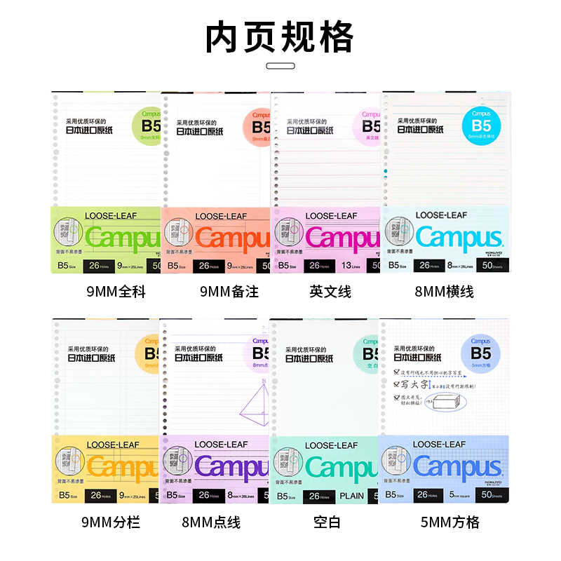日本KOKUYO国誉活页纸替芯B5笔记本子记事a4空白方格a5内芯可打印