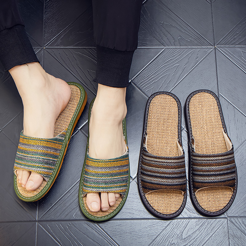 日式亚麻拖鞋女可爱居家夏室内家用情侣厚底防滑月子布拖鞋男夏天