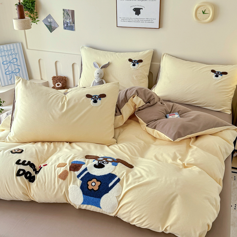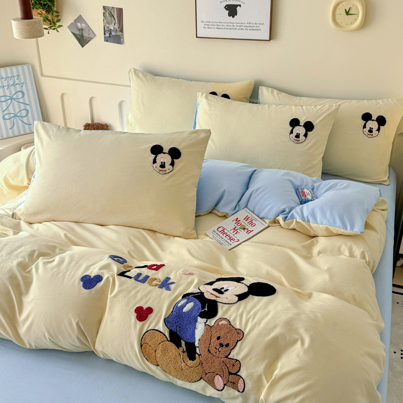 纯棉床上四件套全棉史迪仔儿童男孩被套毛巾绣床单人三件套床品
