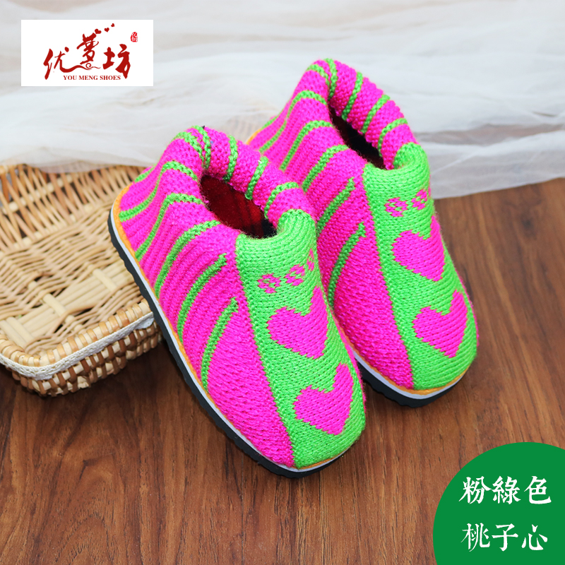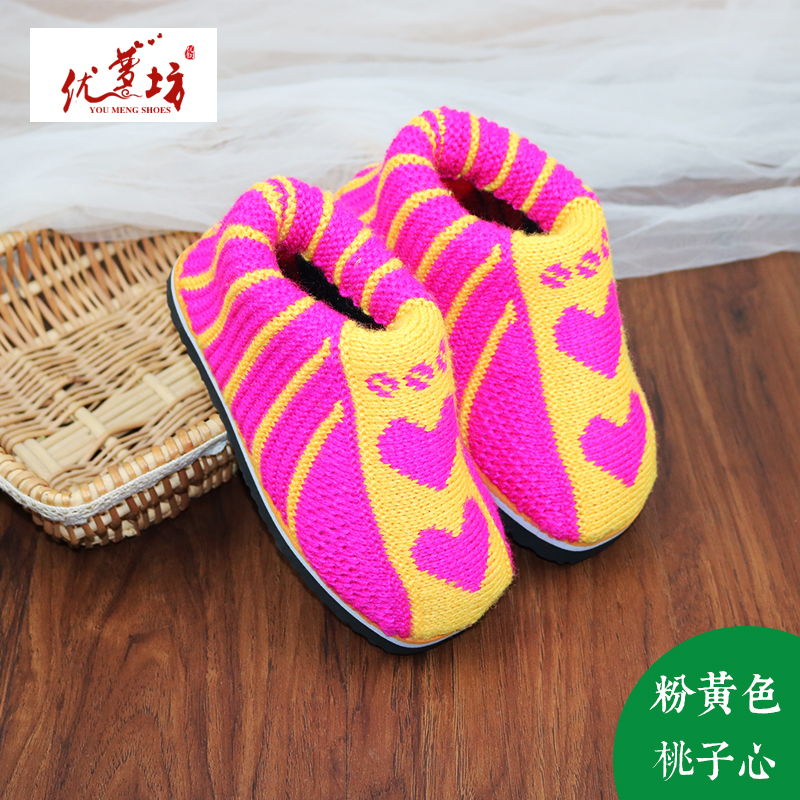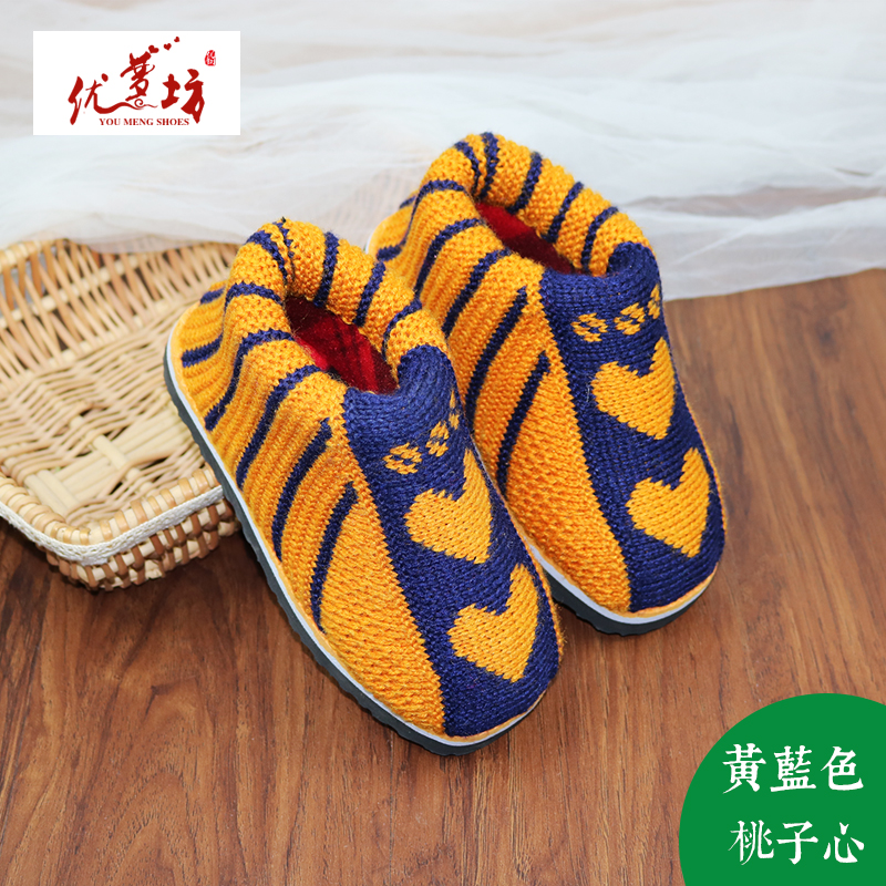 冬季居家防滑耐磨儿童棉鞋纯手工毛线编织男女宝宝保暖包跟棉拖鞋